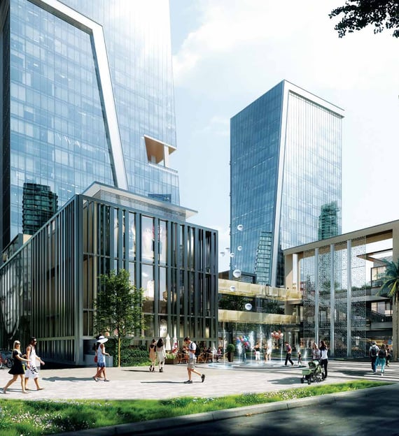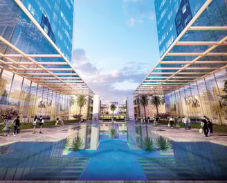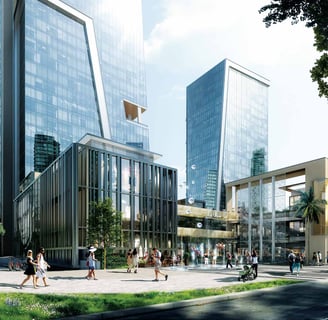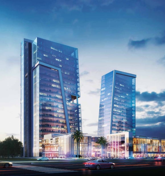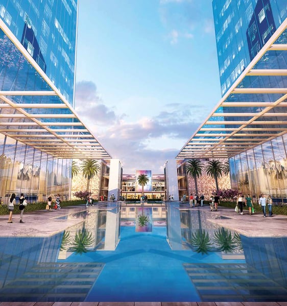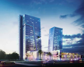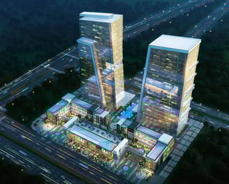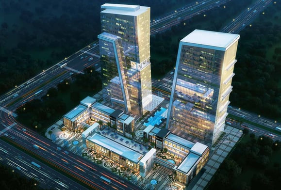 The unique business space design creates an efficient planning envelope with standard floor patterns tailored for optimal efficiency. The office spaces exude grandeur with lavish lobbies and glass curtain walls. Standing at the edge of the central water plaza, the Grade A twin towers offer panoramic views of the expressway and upcoming golf course